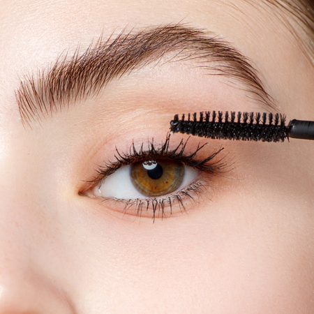 ブラシをまつ毛の根元に当て、持ち上げるようにして毛先まで滑らせるように塗ってください。よりボリュームが欲しい場合は、乾く前に重ね塗りを行います。