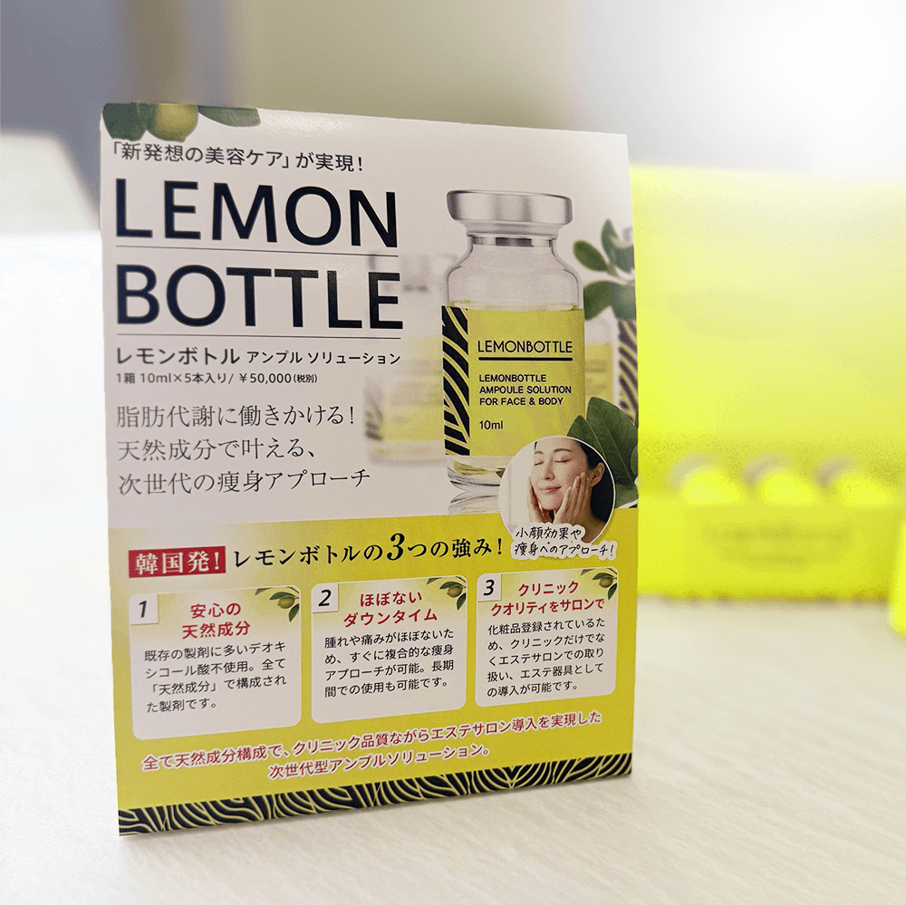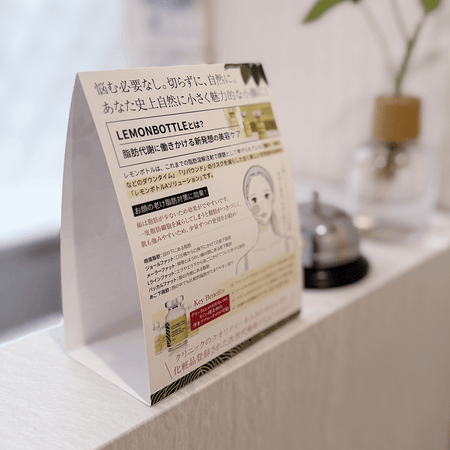 サロン内に設置出来る、LEMONBOTTLEの宣伝用卓上POPです。