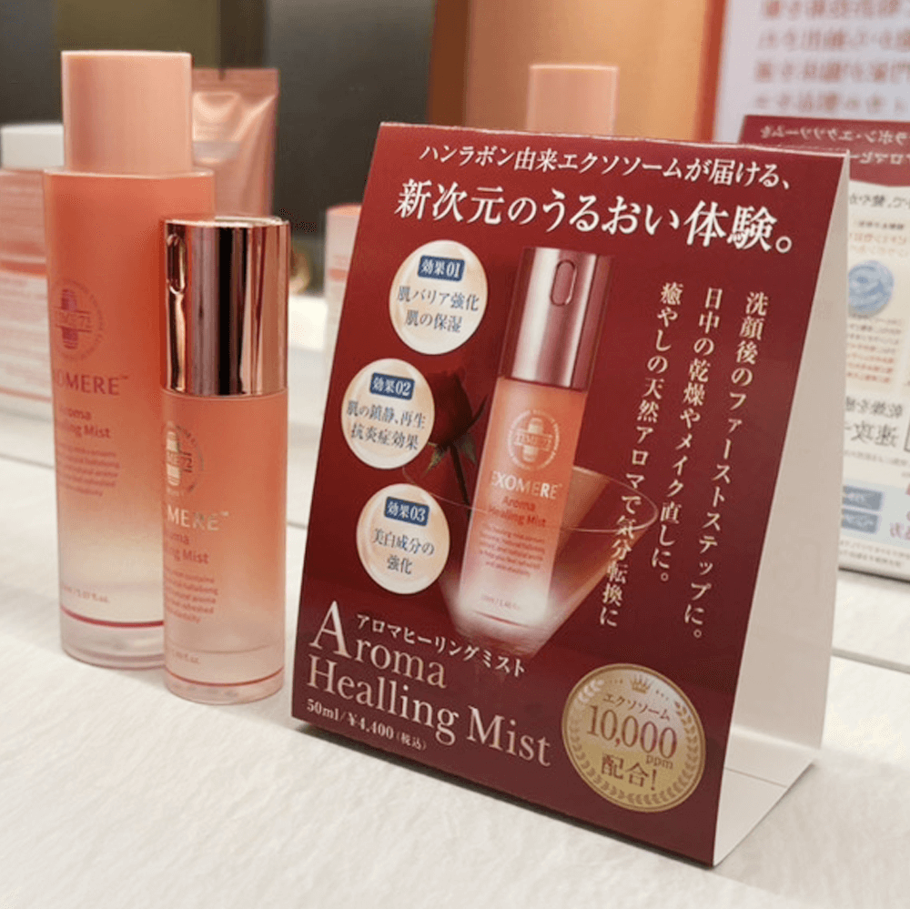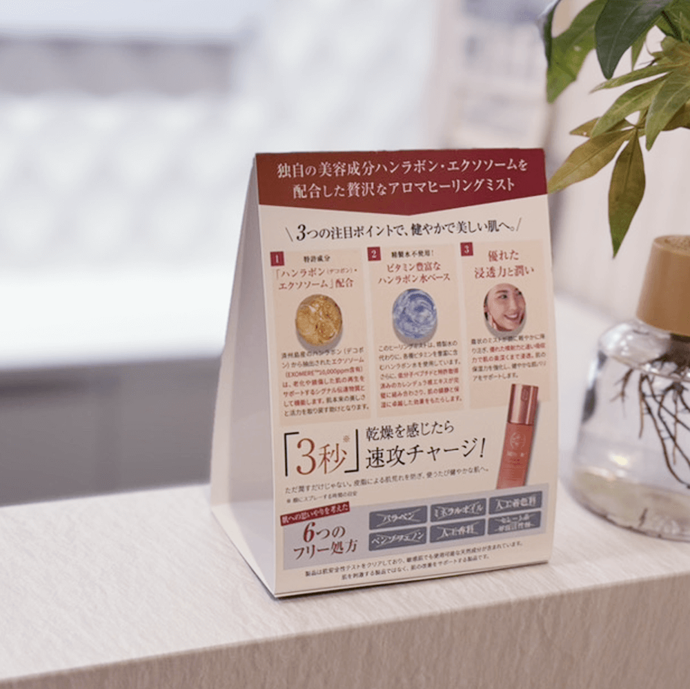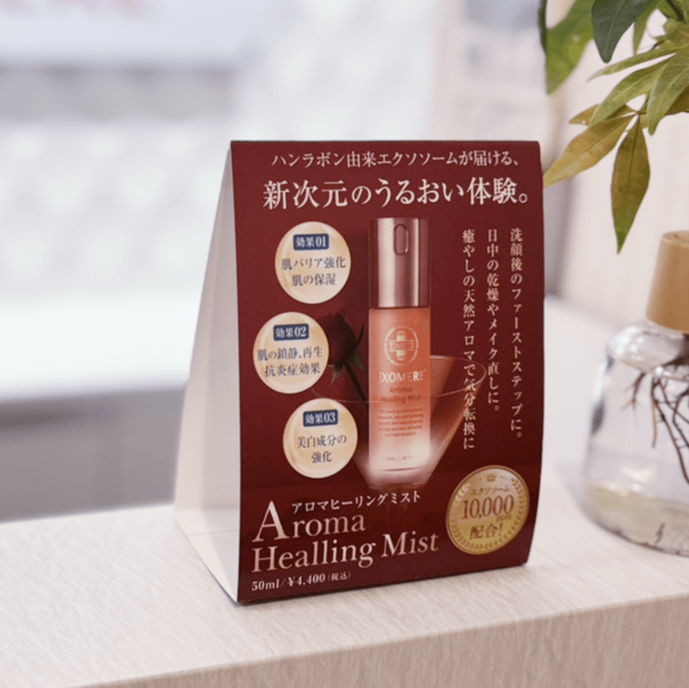 EXOMEREアロマヒーリングミストの物販販促強化に役立つ店内卓上POPです。