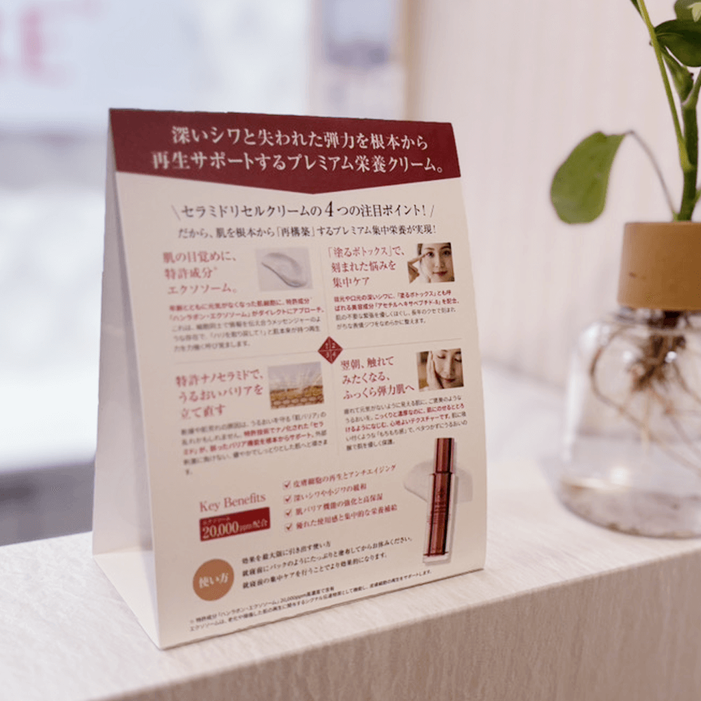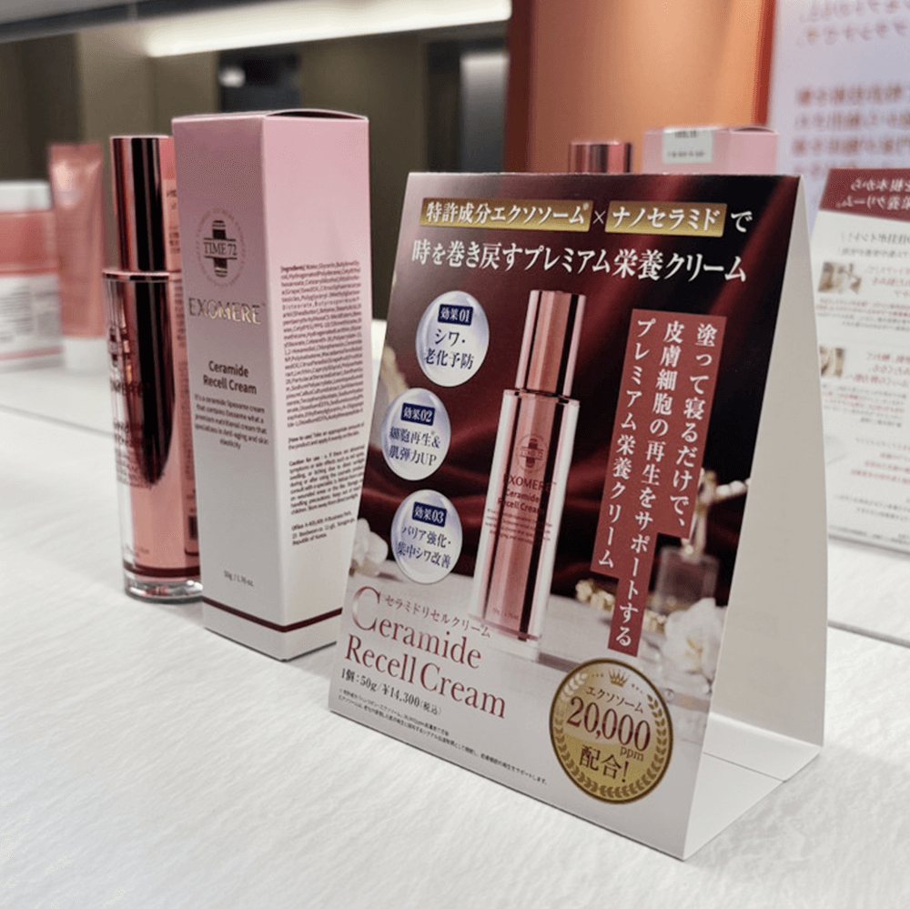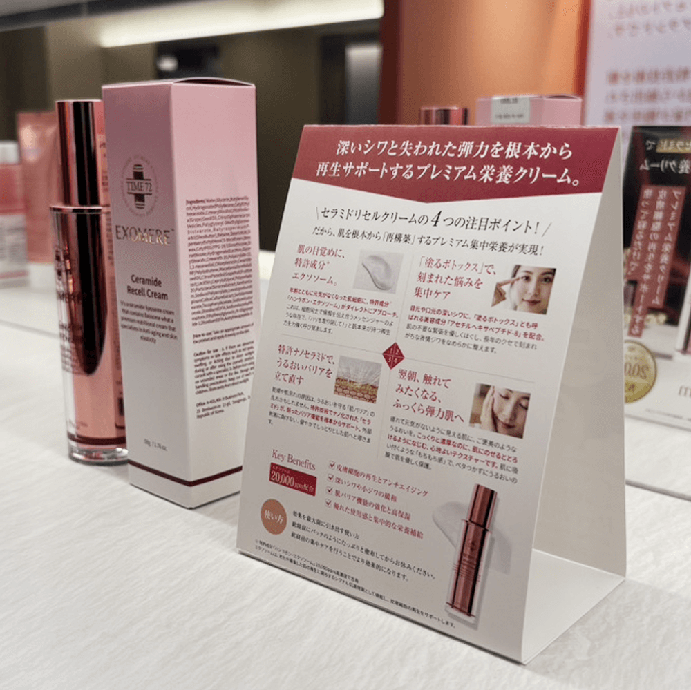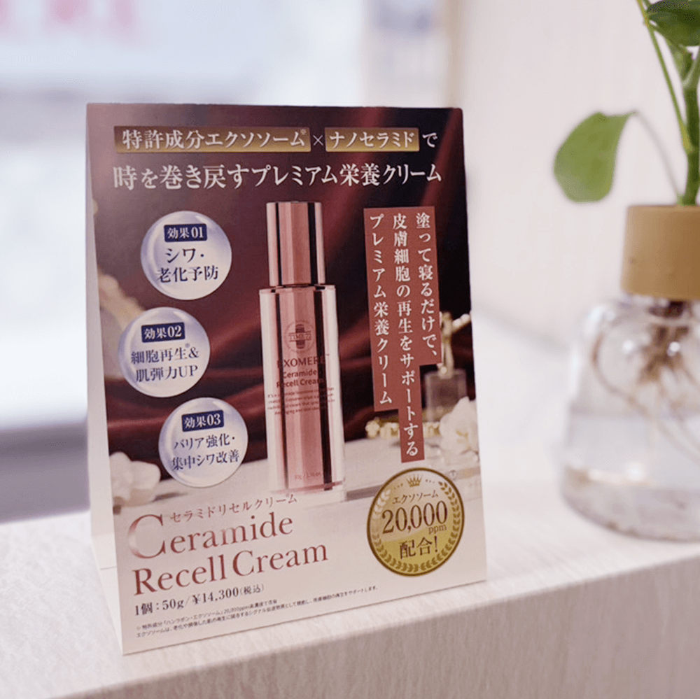 EXOMEREセラミドリセルクリームの物販販促強化に役立つ店内卓上POPです。