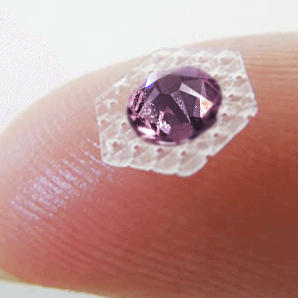 この二つの物質の電位差によって発生した微弱電流を生体に導入する ことを目的としたシールです。 目立たない透明タイプなので、職業や性別を選びません。
